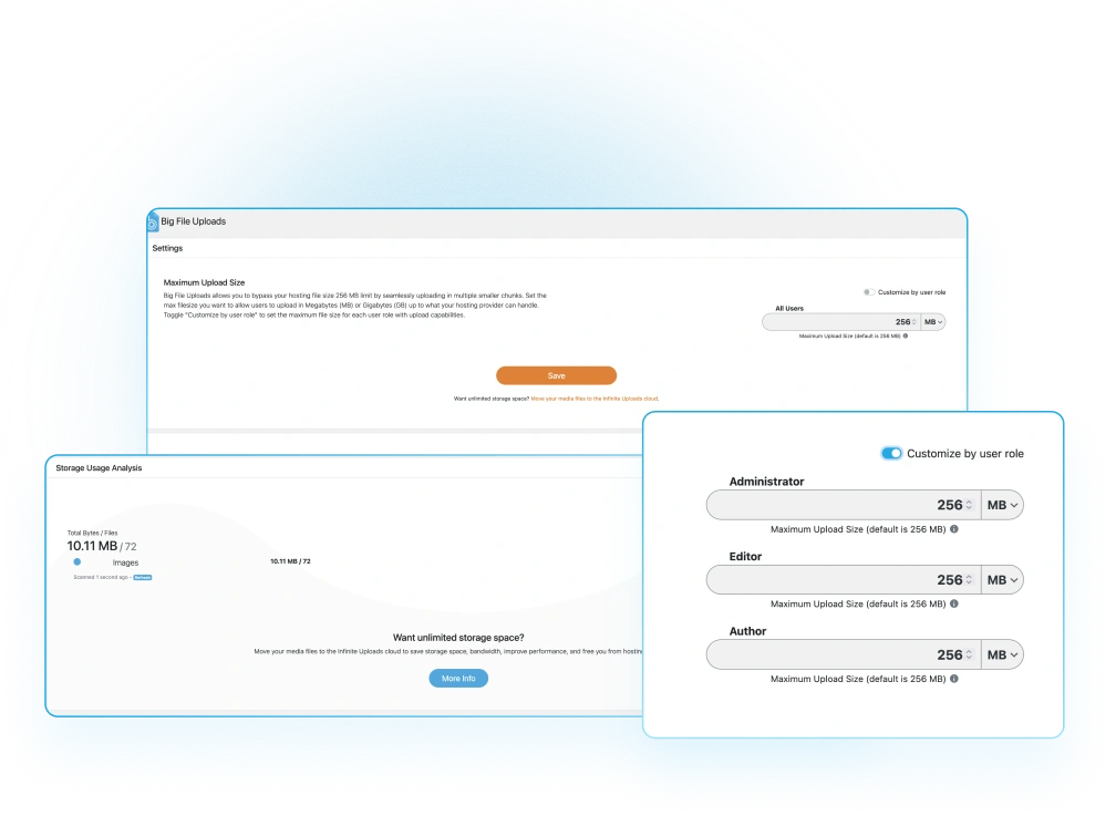 Whether you create, manage, or host, Infinite Uploads helps you store smarter, scale faster, and deliver with confidence.