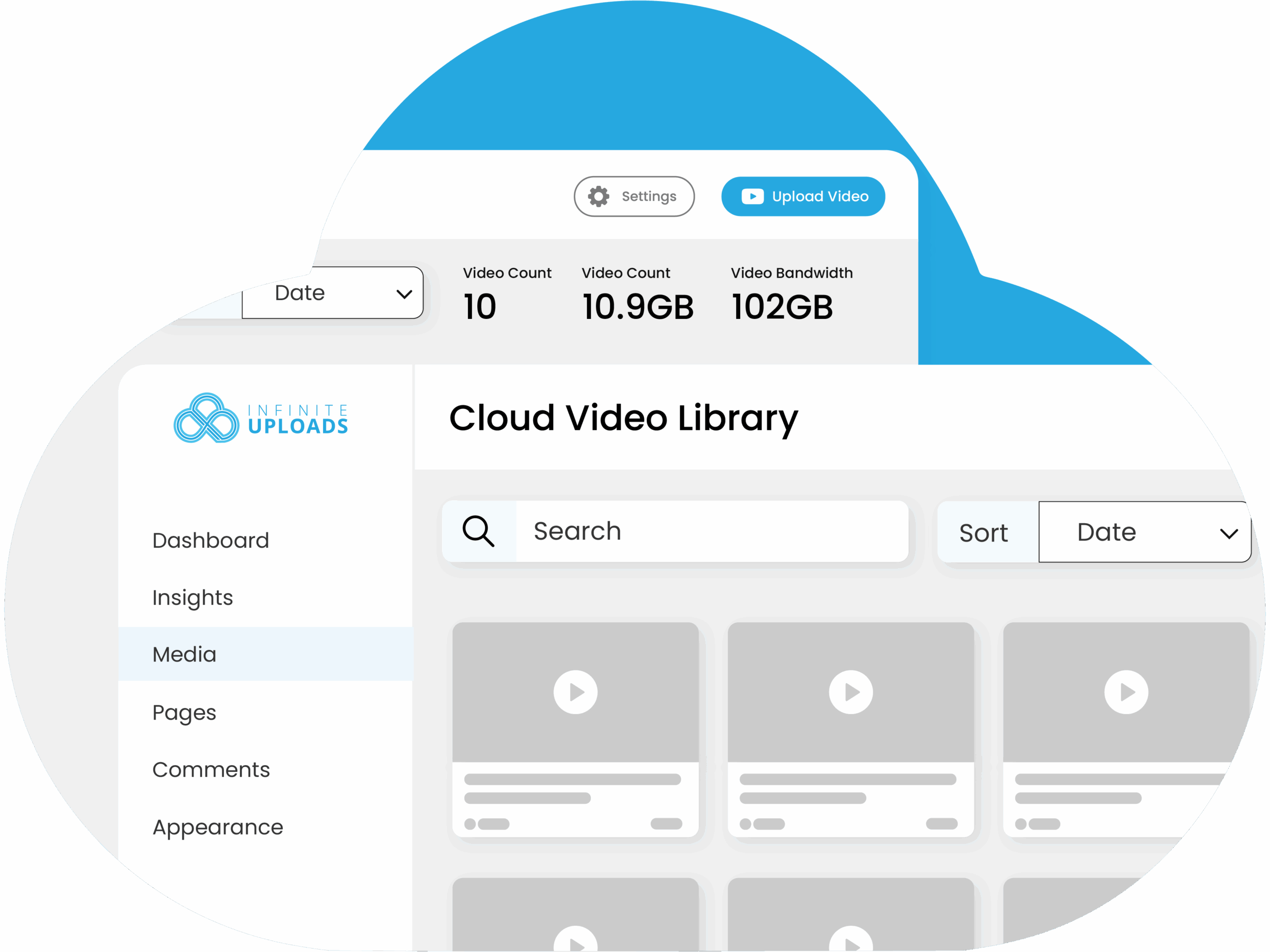 The Infinite Uploads WordPress Video Library lets you upload, organize, and stream videos directly from your WordPress dashboard. No YouTube embeds or third-party hosts. Just fast, reliable WordPress video hosting that keeps your content private, on-brand, and in your control.